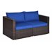 Pemberly Row 2-piece Rattan Patio Corner Sofa Set with Blue Cushion in Brown