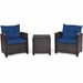 Pemberly Row 3PCS Patio Rattan Set Cushioned Conversation Set Sofa Navy