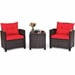 Pemberly Row 3PCS Patio Rattan Furniture Set Cushioned Conversation Set Sofa Red