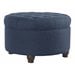 Pemberly Row Round Wood & Fabric Large Storage Ottoman in Navy Blue