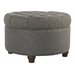 Pemberly Row Round Traditional Wood and Fabric Large Storage Ottoman in Gray